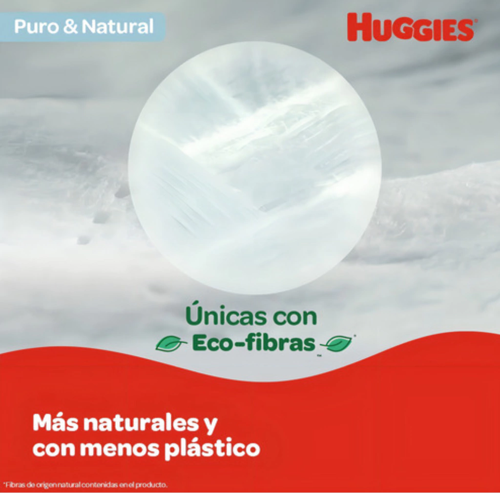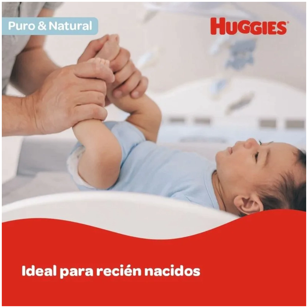 Las Toallitas húmedas Huggies® Puro y Natural están hechas con materiales de origen natural, suaves como el algodón que cuidan la delicada piel de tu bebé. Cuenta con una tapa práctica y segura que permite mantener la humedad de la toallita por más tiempo una vez abiertas.